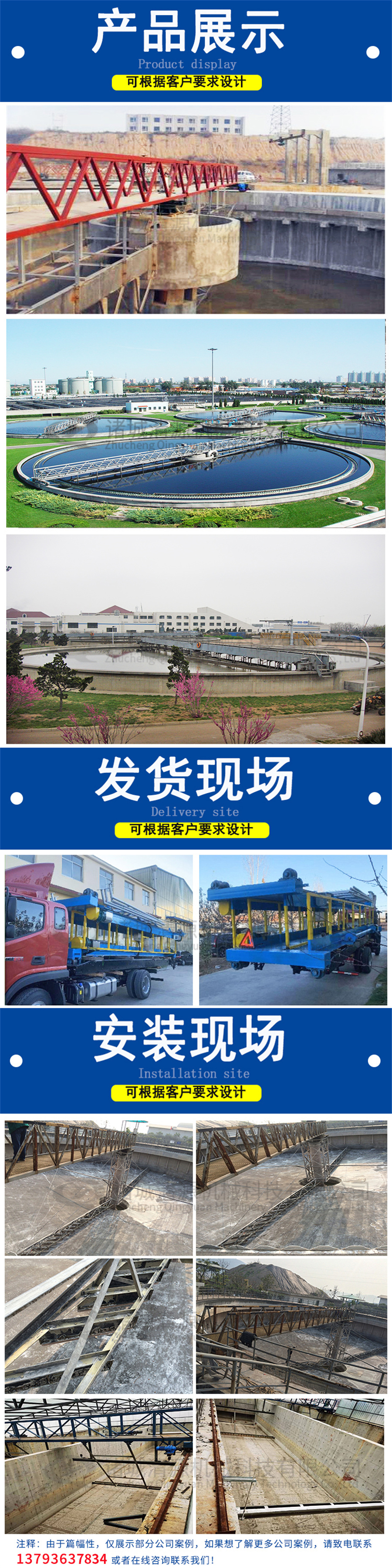 全橋式周邊傳動刮吸泥機用于污水處理廠、自來水廠以及工業(yè)廢水處理中輻流式沉淀池。將沉降在池底的污泥刮集到池底的集泥坑,池面的浮渣被撇向管式排渣斗。